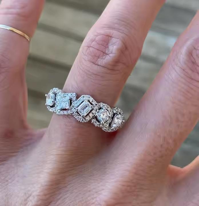 Bague en diamant cultivé en laboratoire à cinq pierres 1.65 Ctw Cluster Wedding Band avec Multi Shape Halo Silver Engagement Ring Gift