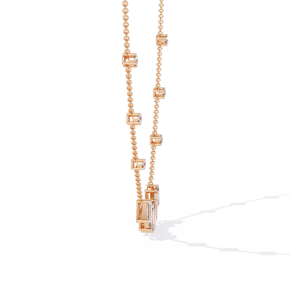 Collier de diamants de laboratoire rond brillant à cinq pierres pour femmes 14K or jaune IGI certifié léger bijoux fins