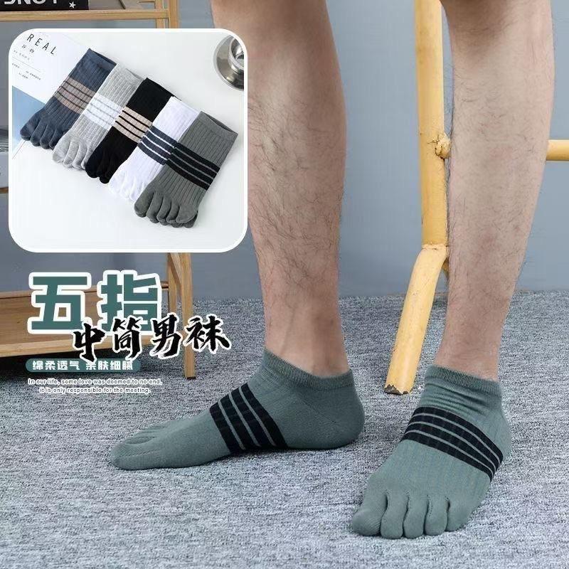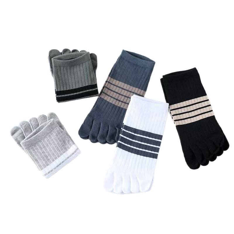 Chaussettes à cinq doigts pour hommes, mi-mollet, en coton, respirantes, décontractées, rayées, vert, noir, gris, bleu, blanc