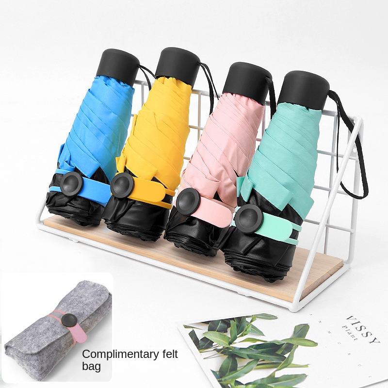 Parapluie de poche compact et portable, anti-UV, en caoutchouc noir, à cinq plis et six baleines, pour femmes, pour fabricants
