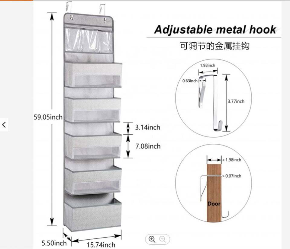 Sac de rangement suspendu à cinq couches en tissu non tissé gris sérigraphié, pliable, avec fenêtre en maille pour porte arrière