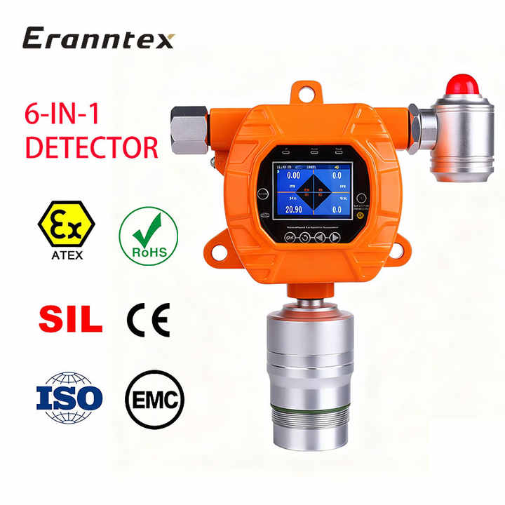 Détecteur de gaz fixe 6-en-1 EX CO H2S O2 CO2 Ammoniac avec écran LCD – Détecteur de gaz multifonctionnel