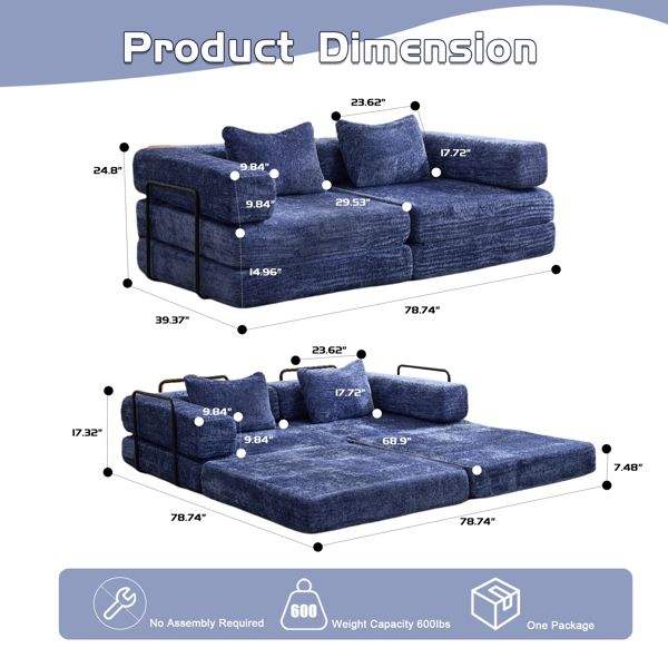 Canapé modulaire sectionnel sans structure, convertible en canapé-lit au sol, avec cadre à forme fixe, sans assemblage requis