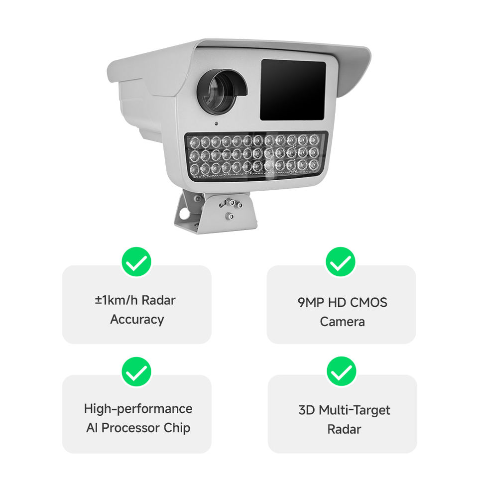 Caméra de contrôle de la vitesse fixe utilisant un objectif haute résolution de 9 MP pour capturer des détails clairs des véhicules comme preuve de ticket de circulation