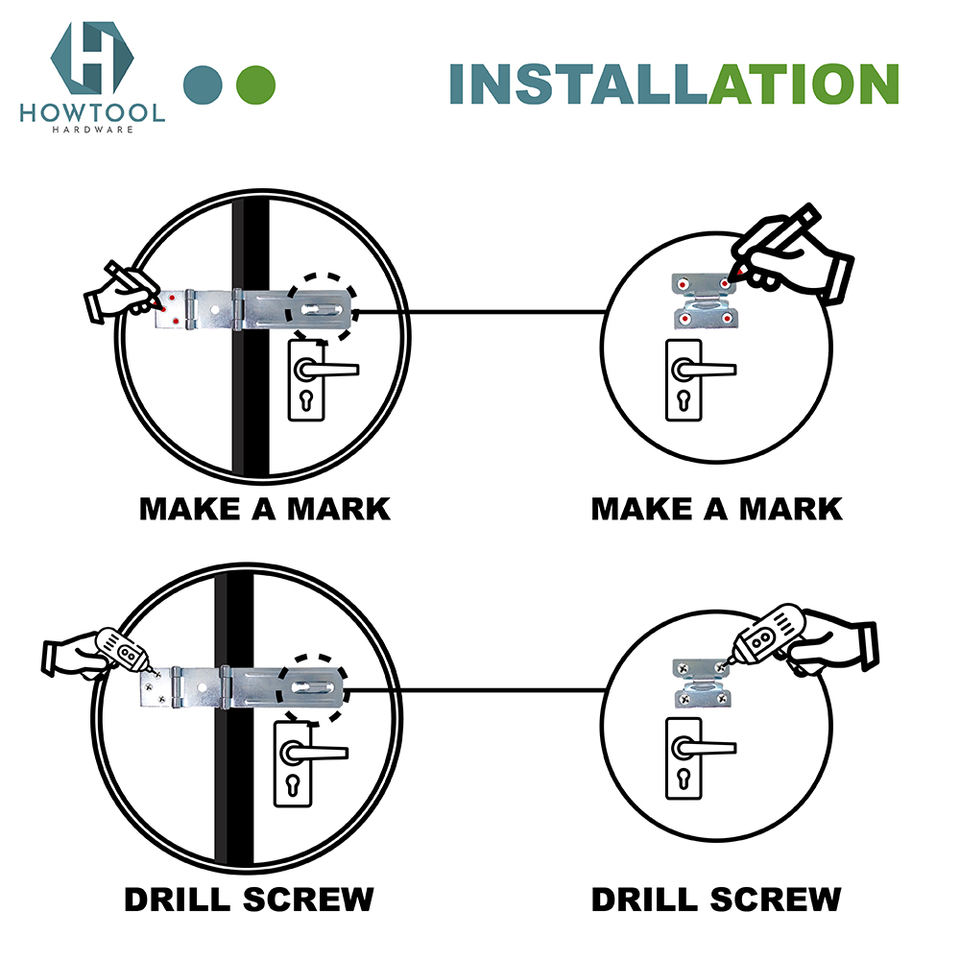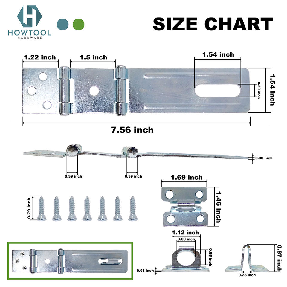Loquet de sécurité à double charnière à agrafe fixe, 3-1/2 pouces ou 4-1/2 pouces