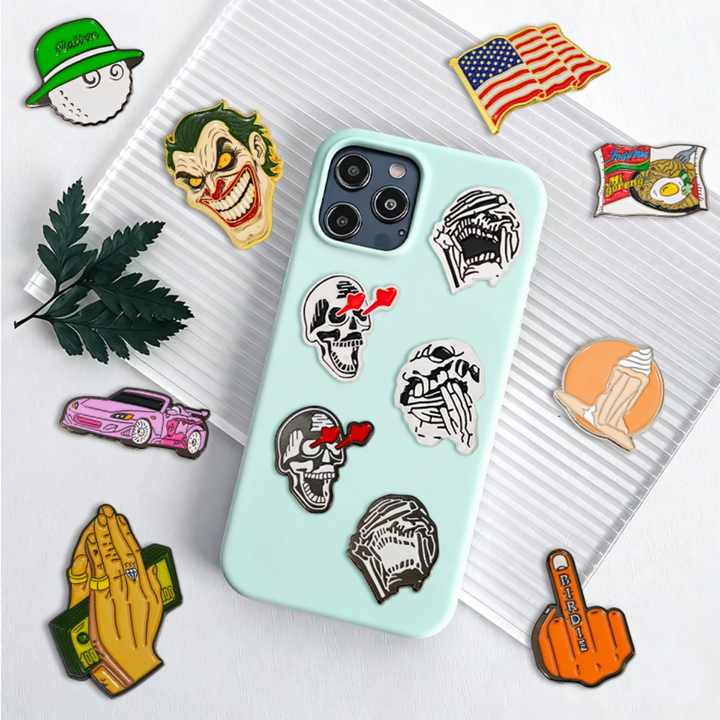 Autocollant de téléphone portable en métal personnalisé en alliage de zinc, mini, émaillé, interchangeable, avec logo 3M, pour filles, pour coque de téléphone portable