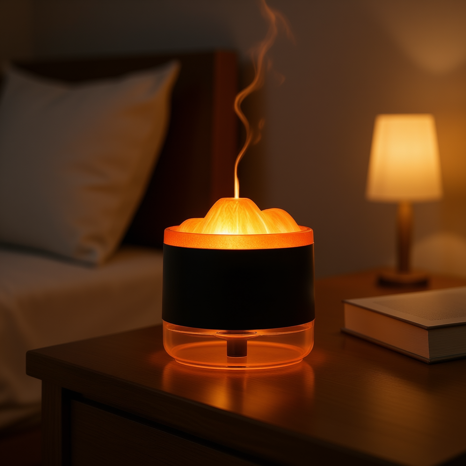 Diffuseur d'arômes à flamme, humidificateur 0,5L, lumière changeante de couleur, commande tactile, portable, utilisation en hôtel