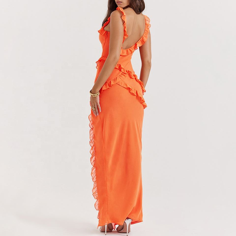 Robe longue à volants orange flamme Événements spéciaux Robes mi-longues pour femmes Occasions spéciales Robes personnalisées