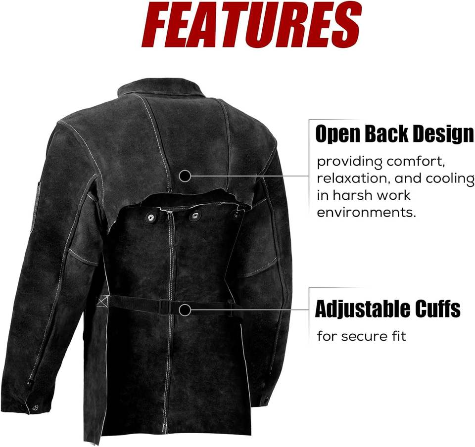 Veste de soudage et capuche de soudage en cuir de vachette fendu résistant aux flammes veste de sécurité de soudeur à dos ouvert Durable pour hommes