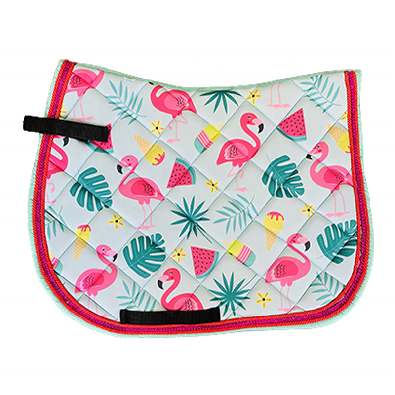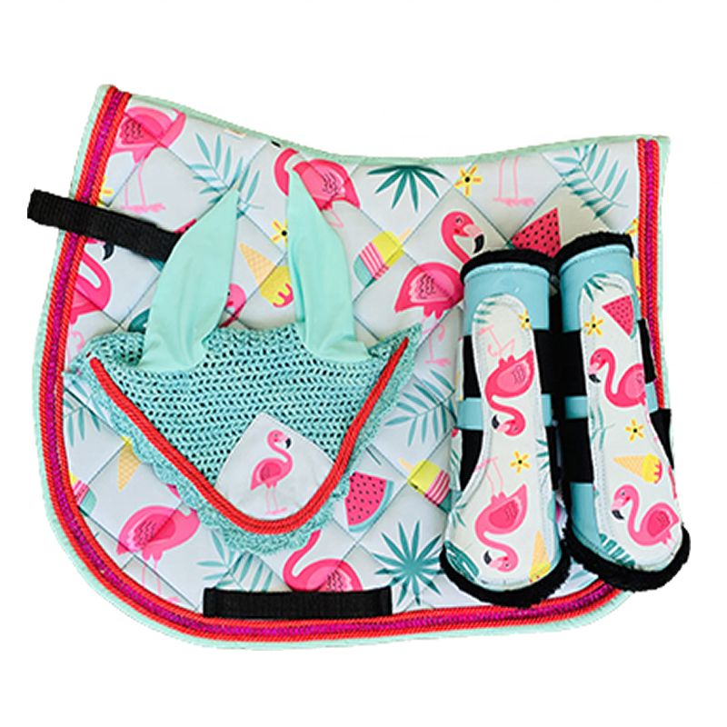 Flamingo Saddle Pad Matchy Set/Sublimation Saddle Pad Set Schabracke with Sky Blue Cord Polyester Filling Bamboo Lining
