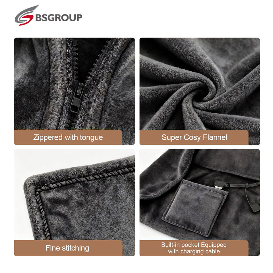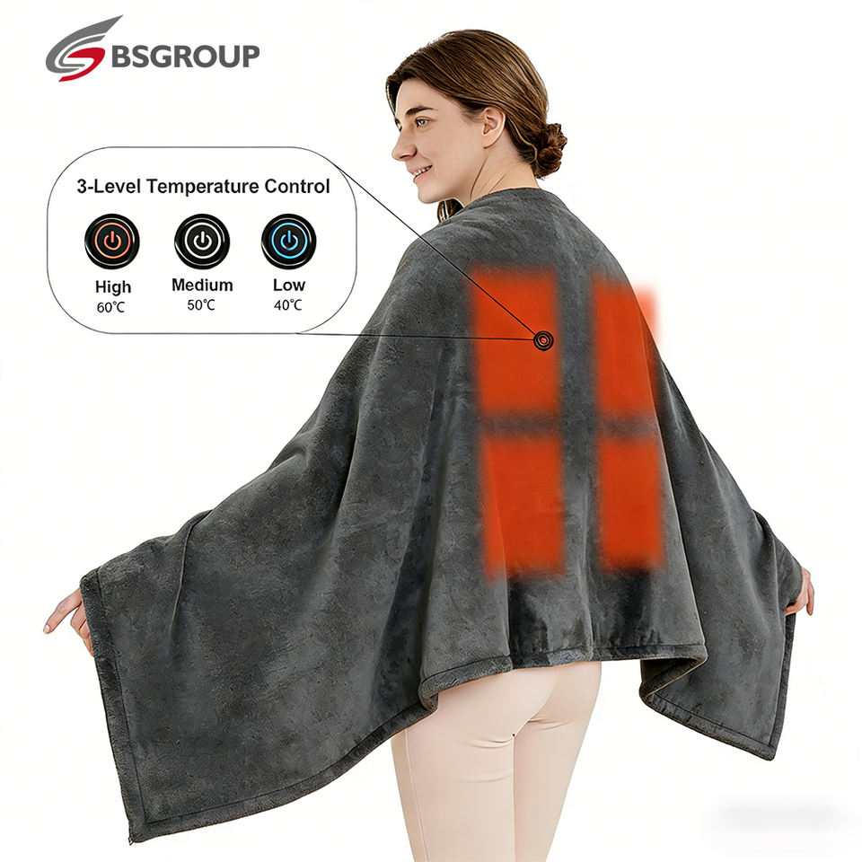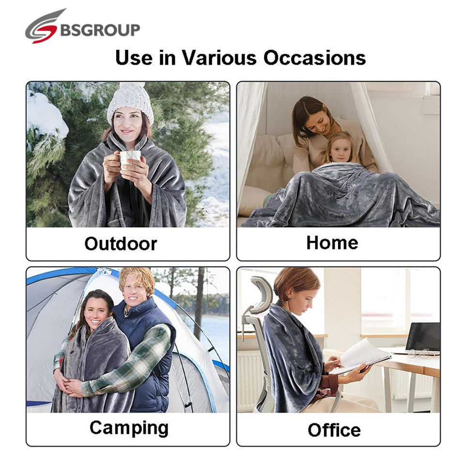 Châle chauffant en flanelle à piles, 8 zones chauffantes, design double face, alimentation USB, lavable, contrôle de la température, certifié ETL