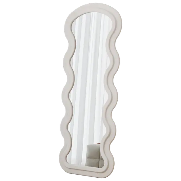 Miroir de sol ondulé en flanelle pour chambre à coucher et salon, à suspendre ou à poser contre le mur, blanc