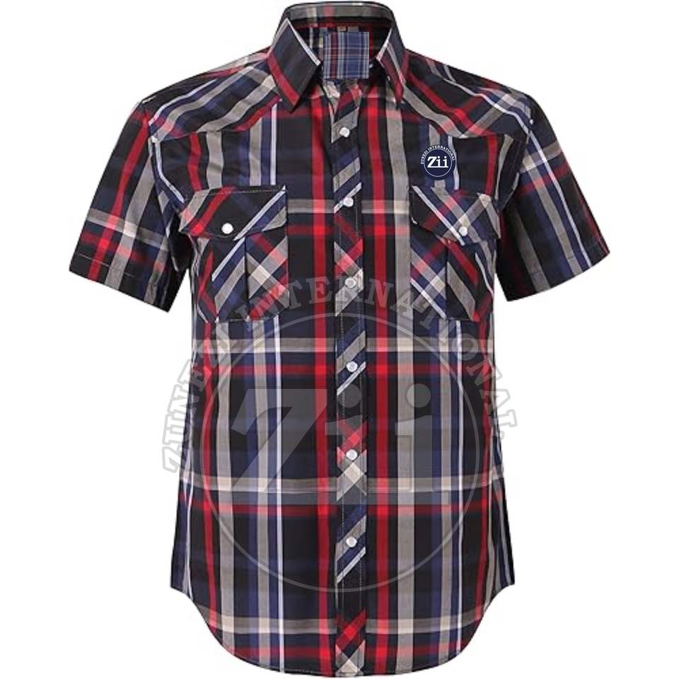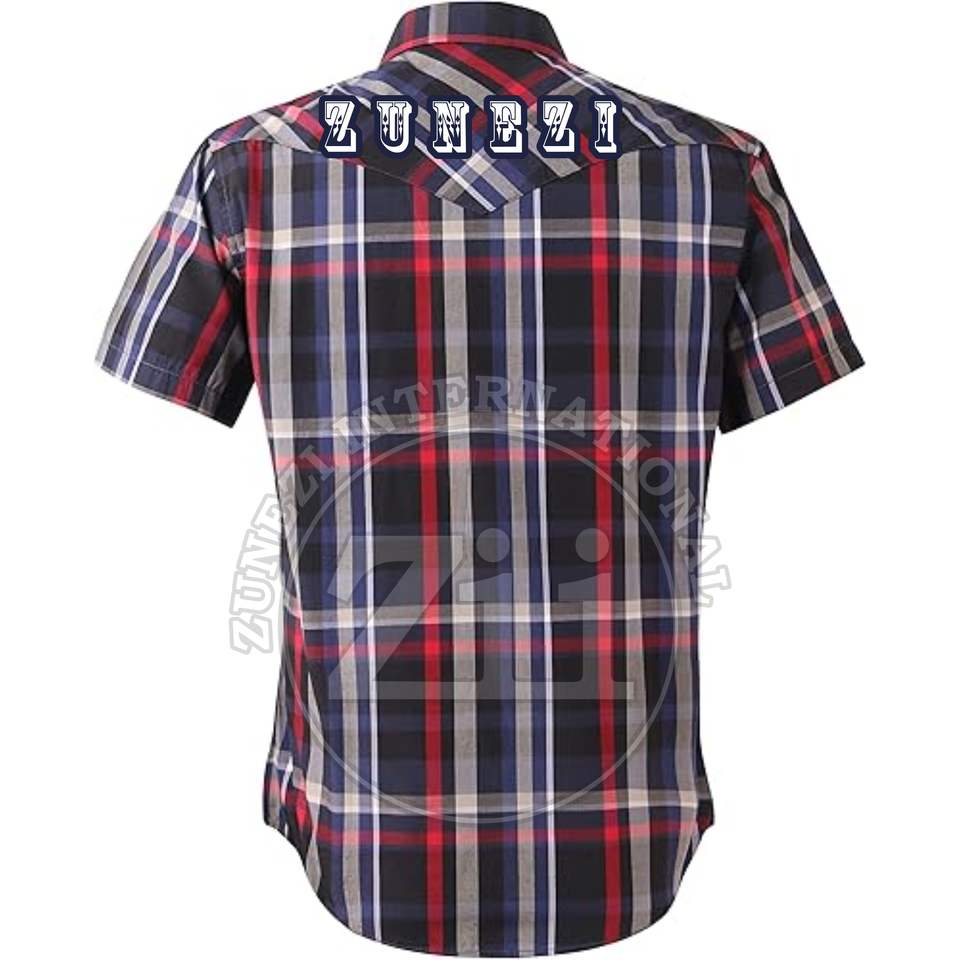 Chemise en flanelle à carreaux boutonnée, manches courtes, épaules tombantes, 100% coton, pour homme, couleur noire, style habillé