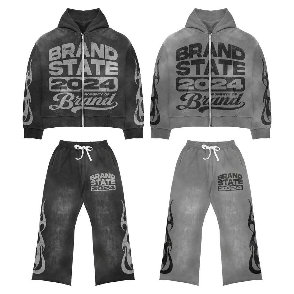 Ensemble de survêtements et sweats à capuche pour homme, 100% coton, coupe évasée, délavé à l'acide, 400 g/m², effet vieilli vintage, style empilé, personnalisable, collection hiver