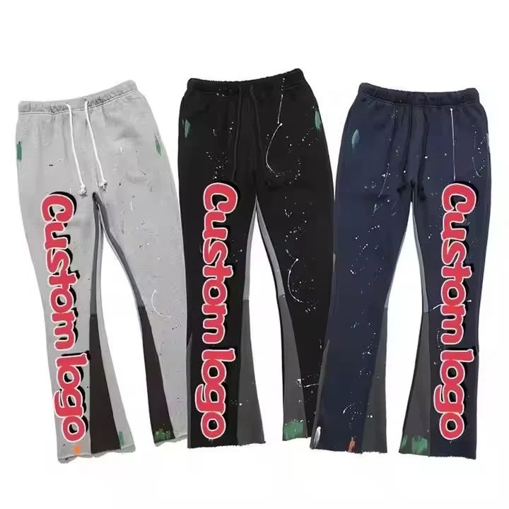 Pantalon évasé Style unisexe personnalisé blanc matériel de haute qualité coton Streetwear Patchwork panneau pantalon évasé pantalons empilés hommes