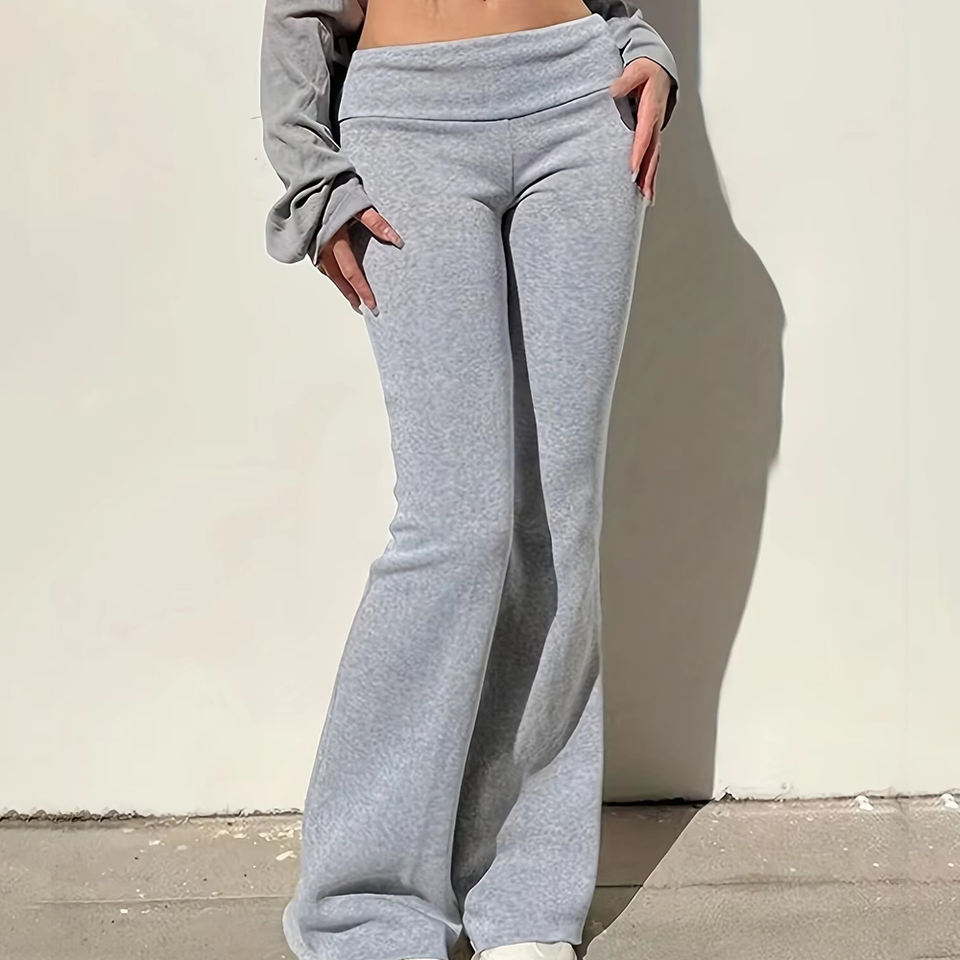 Pantalon évasé côtelé pour femme, taille mi-haute, en tissu extensible, coupe ajustée, style streetwear, pour le quotidien, le bureau, les soirées, pantalon de mode
