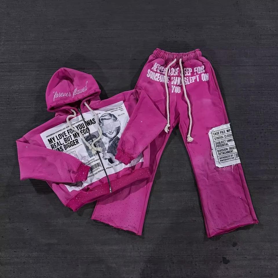 Ensemble de survêtement évasé pour homme, qualité supérieure, dernier design 2025, survêtement brodé délavé, saison hivernale, ensemble deux pièces