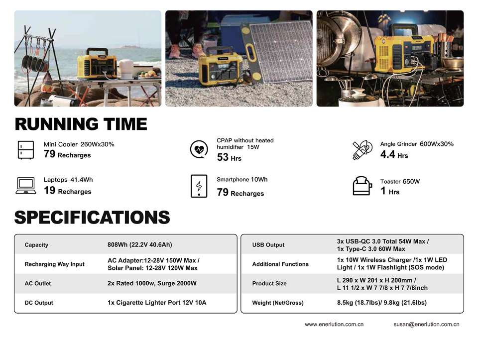 Capacité:1000W 808Wh (22.2V 36.4Ah)