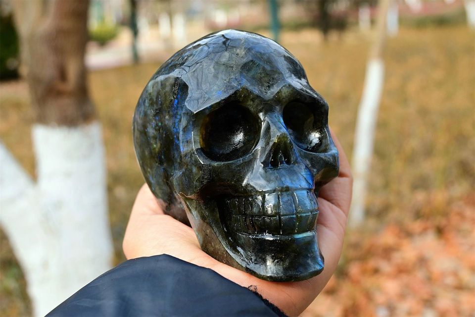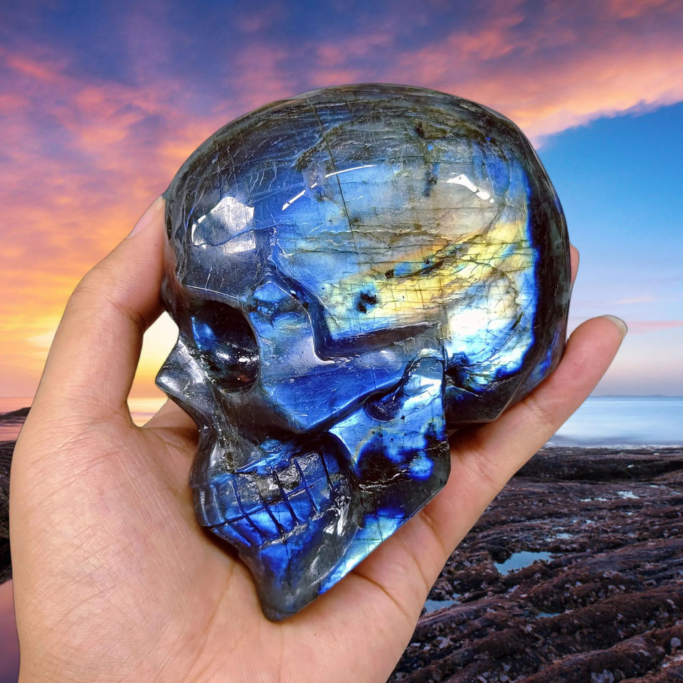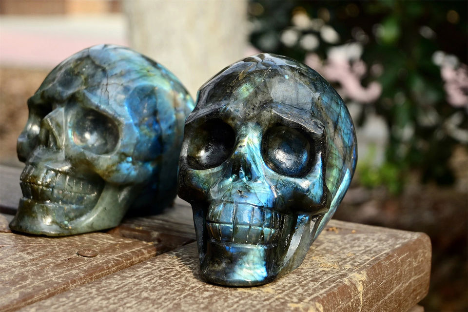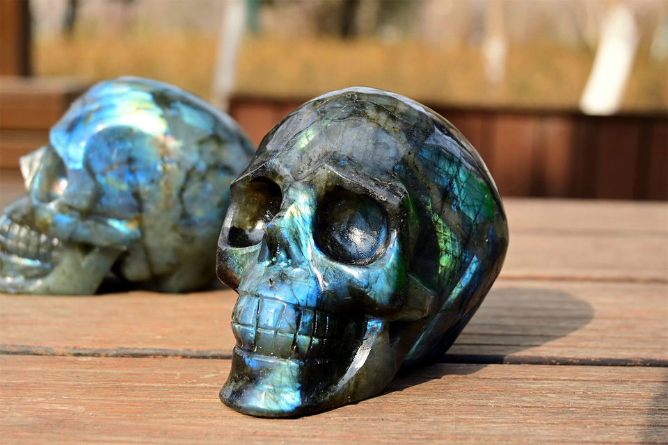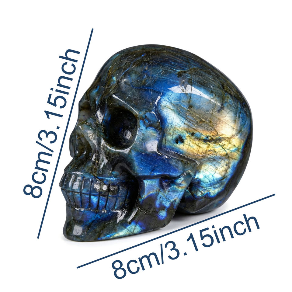 Crâne de Labradorite Éclatant, Cristal Naturel Poli, Pierre de Guérison Énergétique Puissante, Décoration d'Intérieur, Collection, Vente en Gros