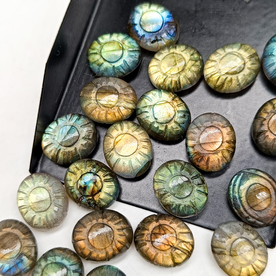 Flashy Labradorite Soleil Sculpture Perles De Pierres Précieuses, Labradorite Soleil Sculpté Pierre Pour La Fabrication De Pendentif, Fournitures De Fabrication De Bijoux, 12mm