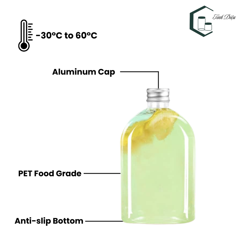 Bouteille plate de récipient de boisson en plastique PET de 350ml/500ml du fabricant du Vietnam bouchon en aluminium à épaulement arrondi pour bonbons alimentaires