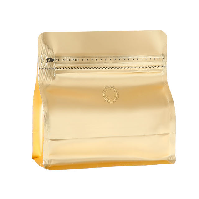 Sac d'emballage de café en PE à fond plat avec gousset latéral facile à déchirer et gravure thermoscellée réutilisable de type support bas quantité minimale de commande