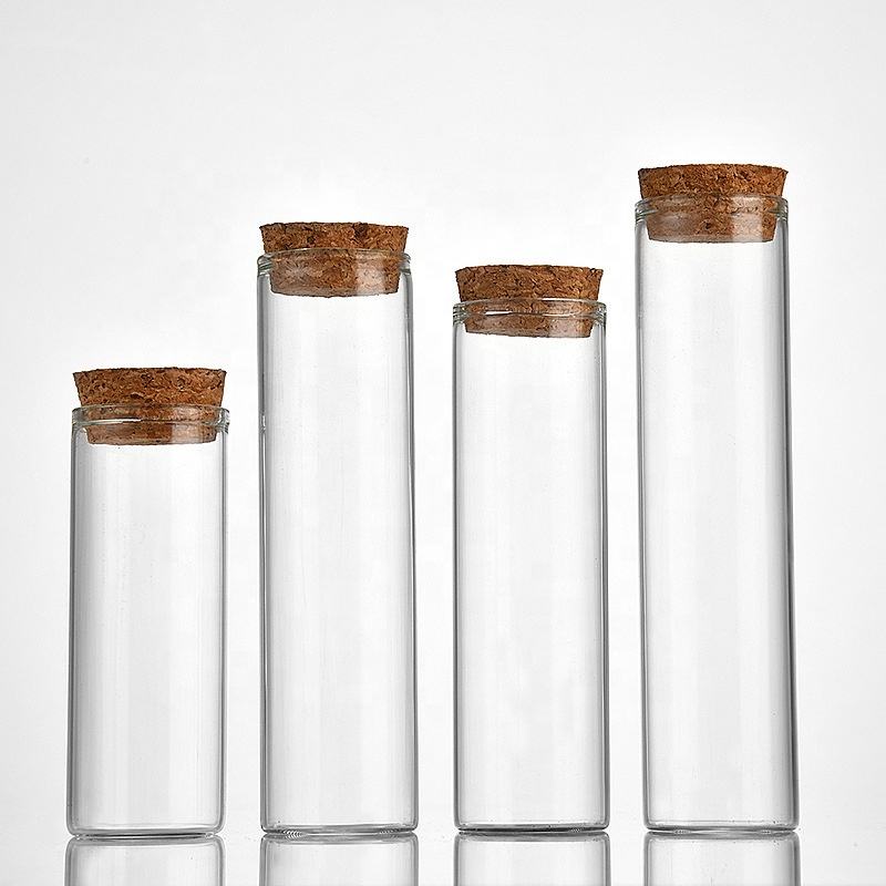 Tube à essai en verre Borosilicate Transparent à fond plat avec liège pour le stockage de bonbons en grains de café thé aux épices alimentaires