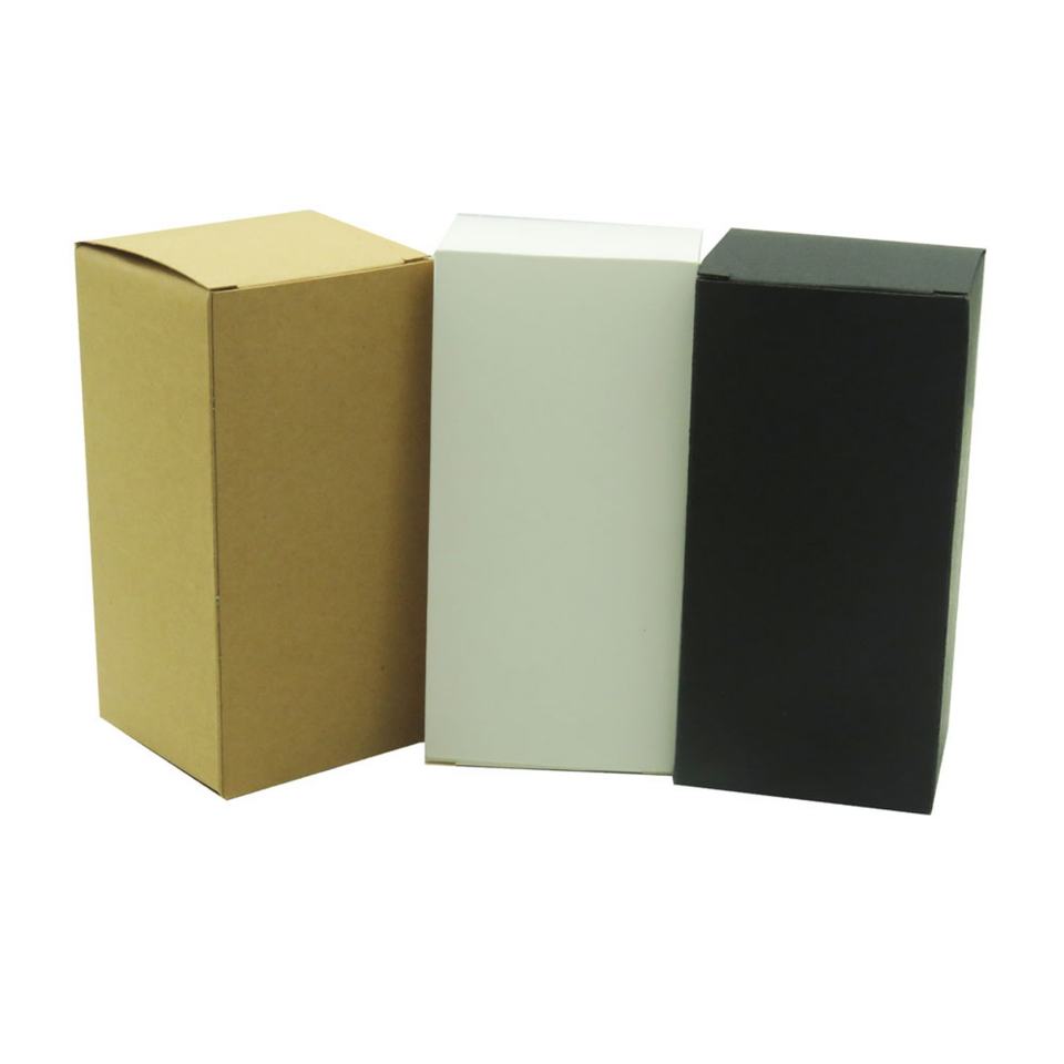 Emballage plat pour bouteille, pot, petite boîte en carton kraft noir, blanc, pliable