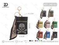 Porte-clés en cuir plat rond avec crâne, gravure à chaud, mini sac cadeau
