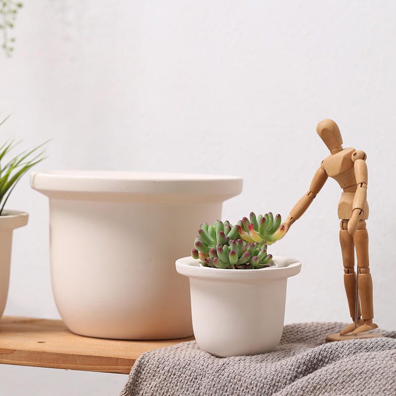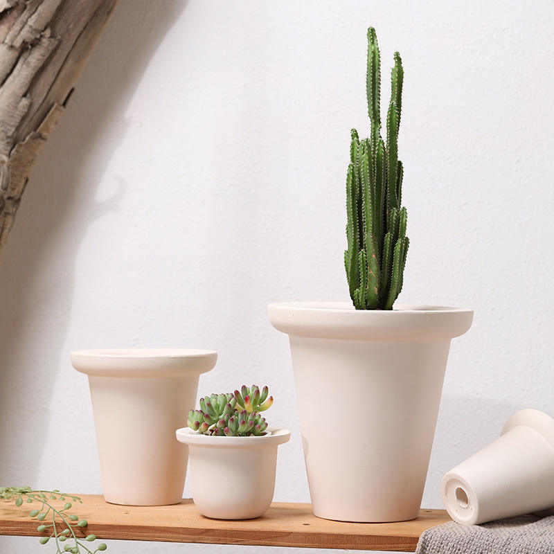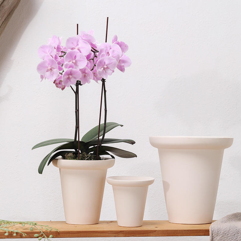 Pot en céramique plat rond droit uni poterie en argile blanche peint respirant auto-absorbant Iris orchidée Pot succulent