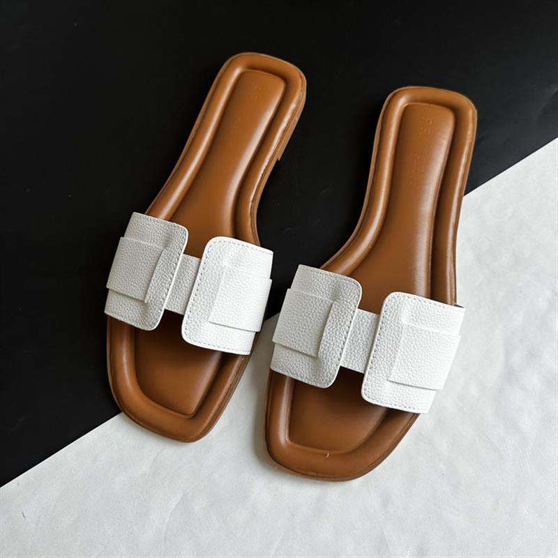 Pantoufles plates en cuir véritable pour femmes 888ZA275