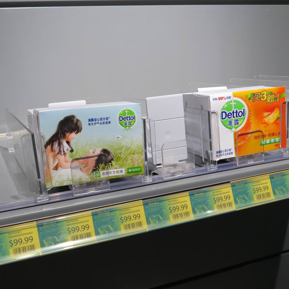 Diviseur de poussoir d'étagère de système de poussée de poussoir de ressort en spirale plat pour l'organisateur de bouteille de supermarché