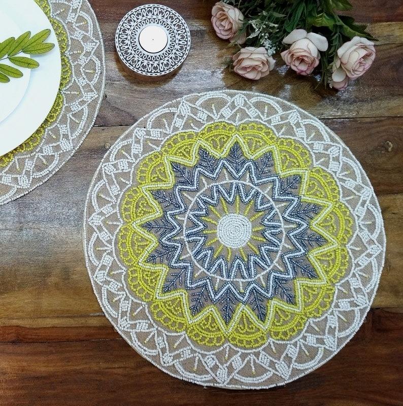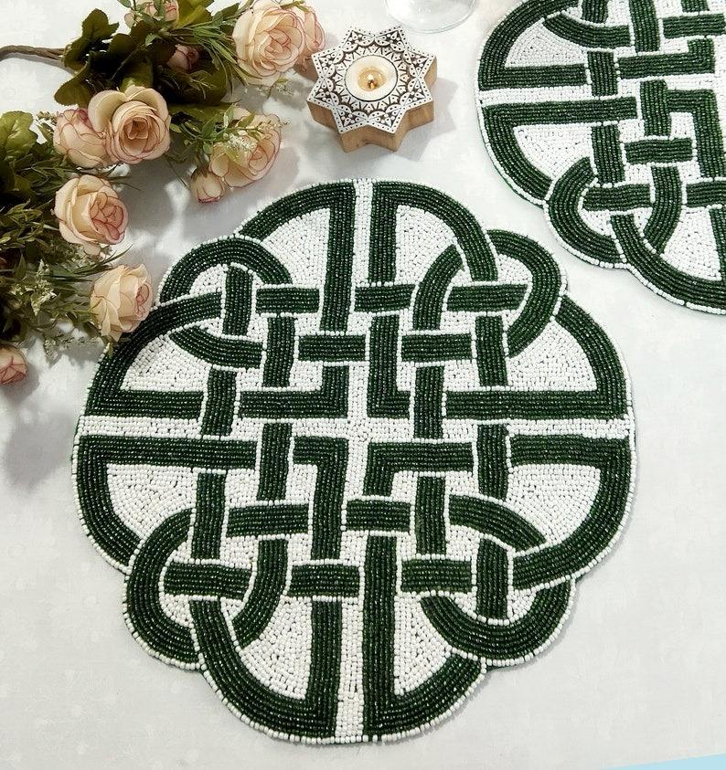 Set de table à motif plat avec perles, tapis pour la décoration de la maison, vaisselle, table à manger, fête et mariage