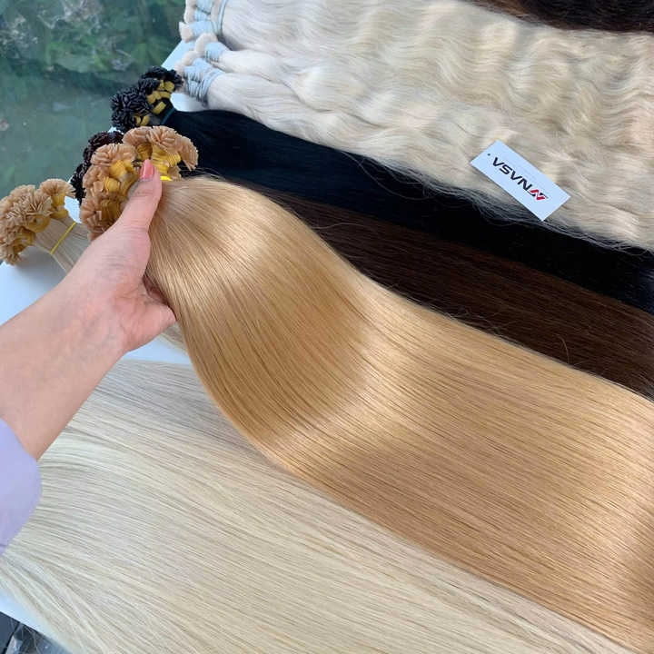 Extensions de cheveux à pointe plate 100% cheveux vierges vietnamiens de qualité supérieure couleur blonde chaude naturelle lisse