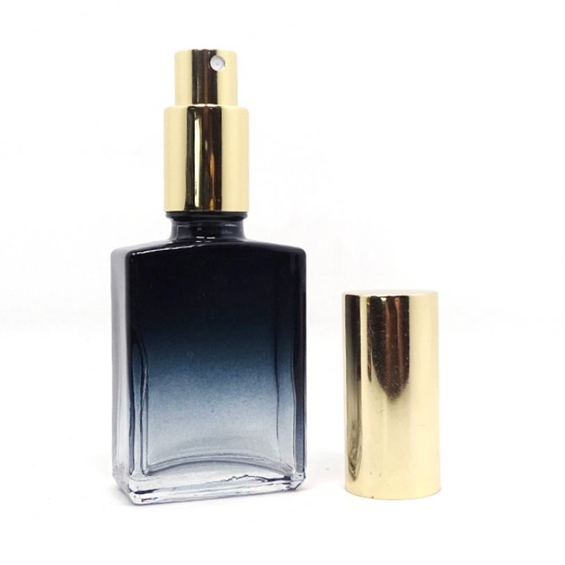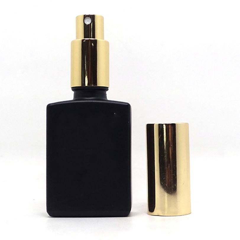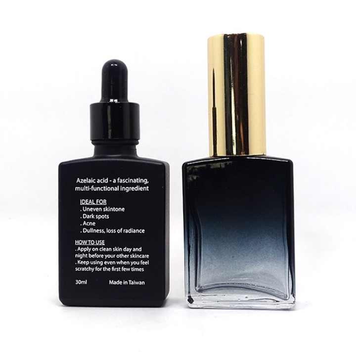 Flacons compte-gouttes en verre noir de luxe, forme carrée rectangulaire, 15 ml, 30 ml, 50 ml, 100 ml, avec couvercle noir et or pour sérum et huile essentielle