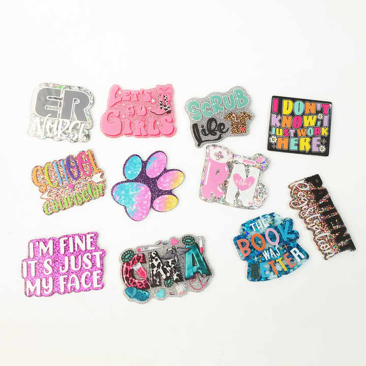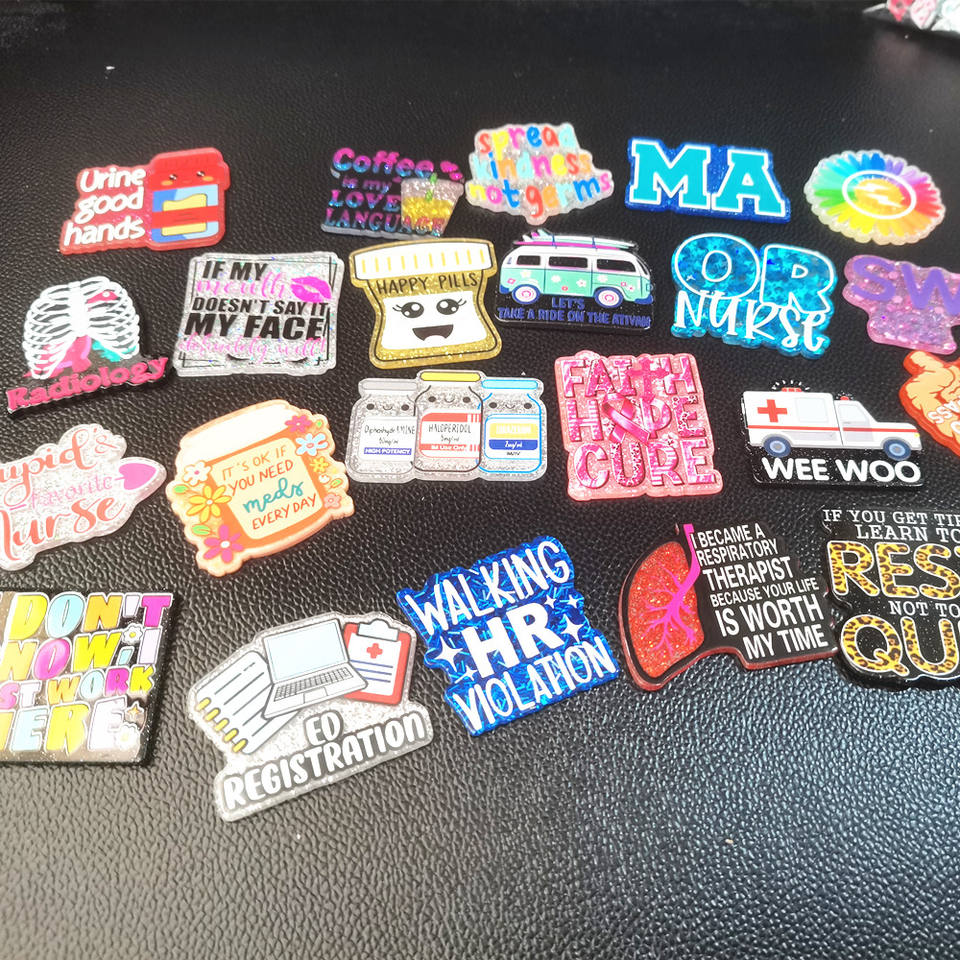 Porte-badge en acrylique personnalisé avec paillettes, lettres médicales, pour étudiants, infirmières, personnel de soins, sans porte-badge