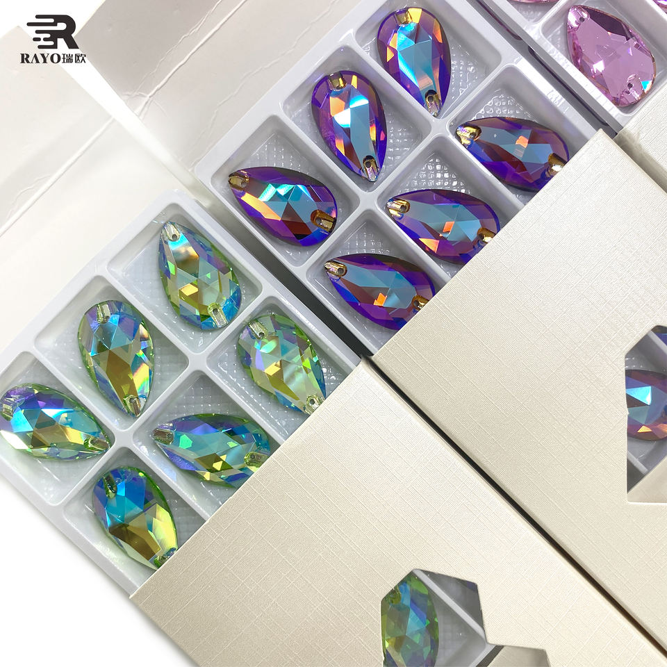Strass à coudre en forme de goutte d'eau à dos plat pour vêtements, artisanat, décorations, cristal K9, robe de soirée