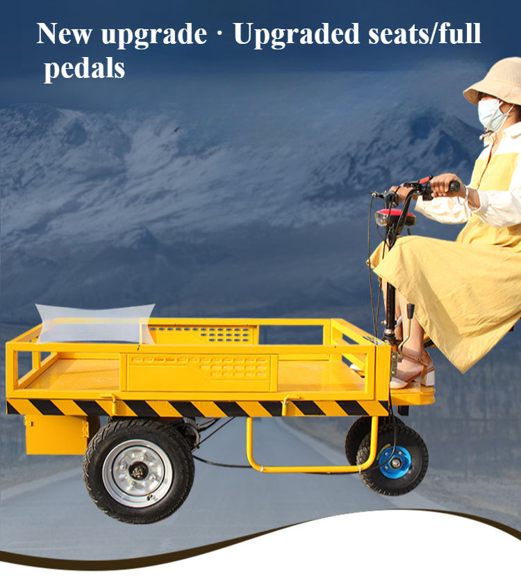 Chariot électrique à plateforme lourde à plateau plat, chariot électrique à quatre roues, transporteur, chantier de construction, batterie
