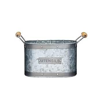 Flatware Caddy With Wood Handle Storage Organizer For Indoor And Outdoor Use Galvanized Metal Kitchen Utensil Holder Low Price