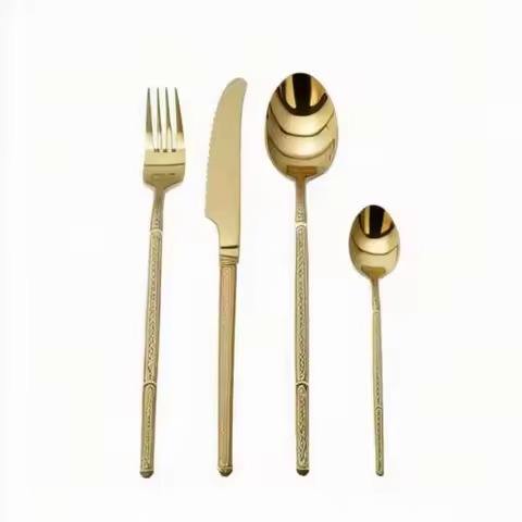 Ensemble de couverts de luxe en acier inoxydable plaqué or, avec manche en acrylique, pour mariage et restaurant