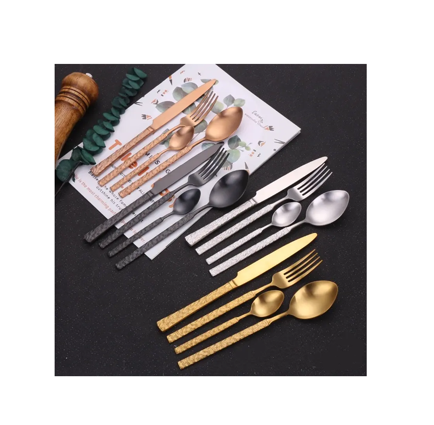 Couverts 4 pièces couteau fourchette cuillère couverts ensemble or acier métal acier miroir dîner fourchettes cuisine Dessert couverts ensemble