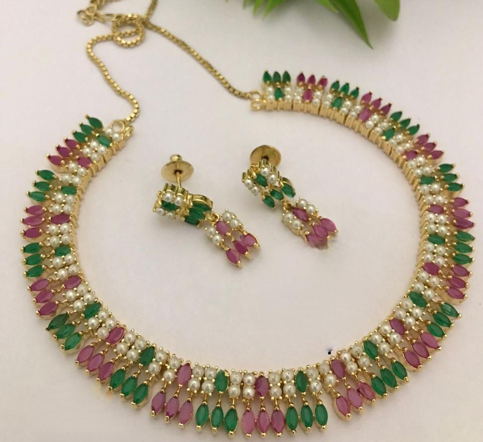 Ensemble collier et boucles d'oreilles en or plaqué de haute qualité avec des perles de CZ et de vraies perles, pour mariage, collection moderne pour femmes