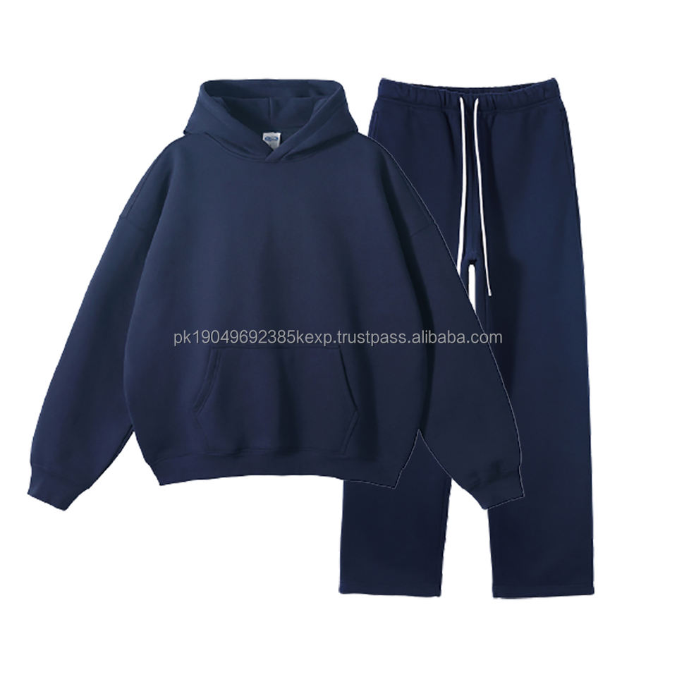 Fleece 350 GSM Cotton Polyester Winter Oversized Blank Plain Tracksuits For Printing Custom Men Streetwear Tracksuit