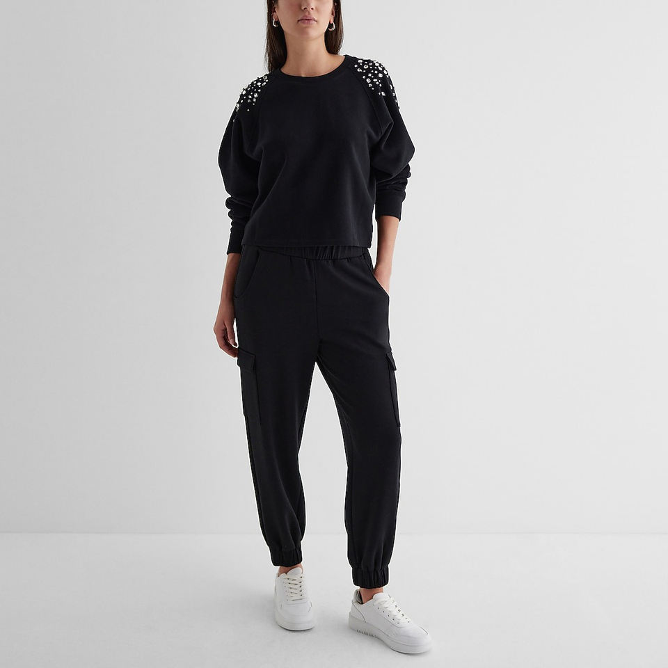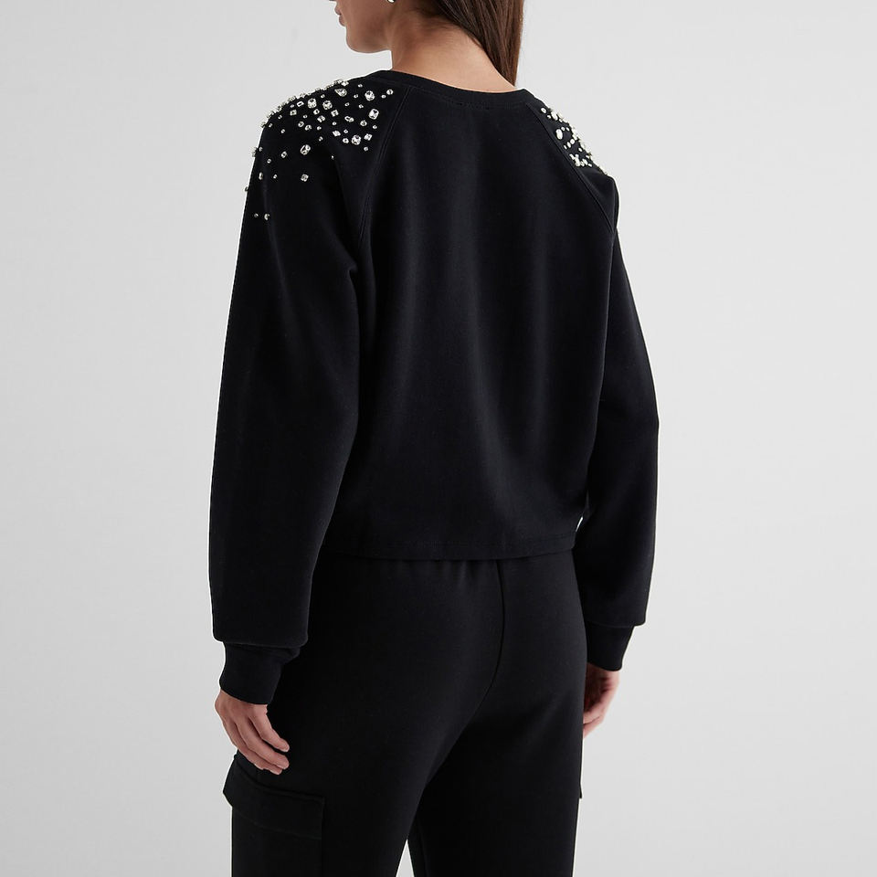 Polaire coton strass col rond sweat femmes pull doux respirant chaud surdimensionné Streetwear mode broderie Patch