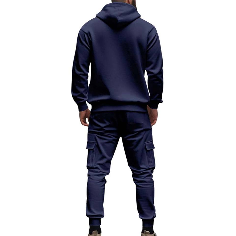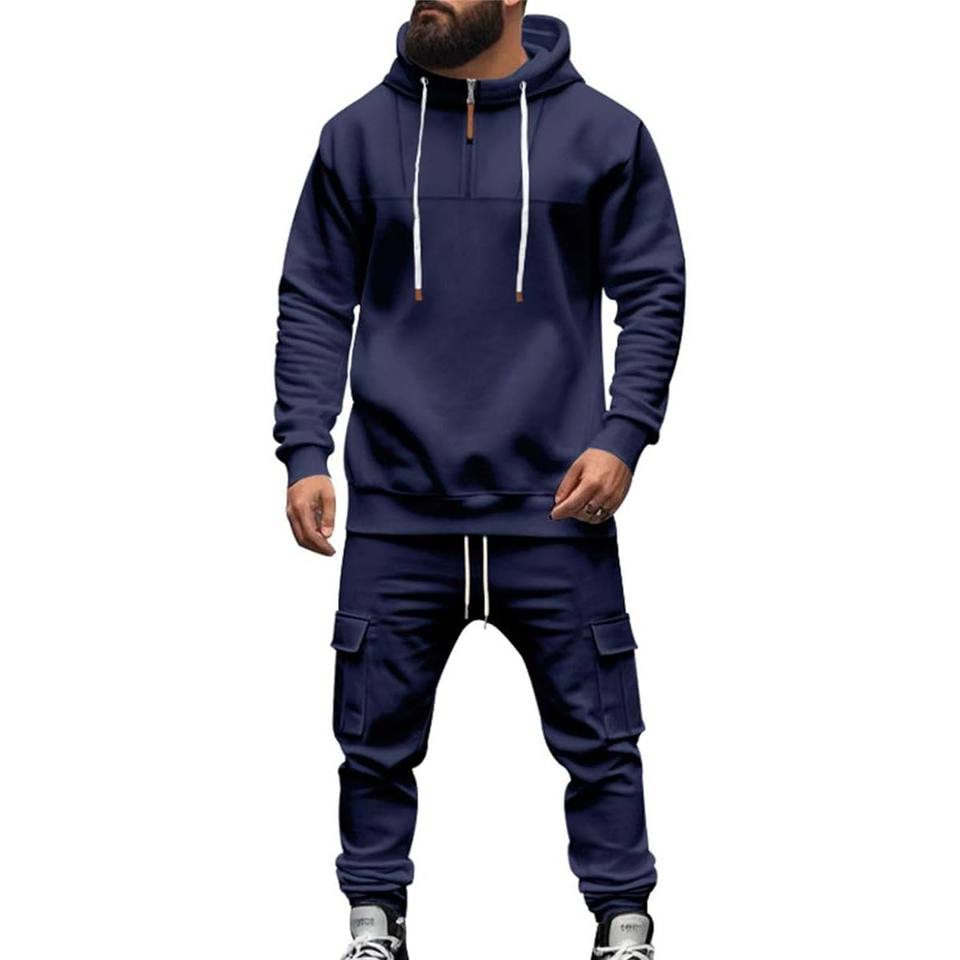 Ensemble de survêtement pour homme doublé en polaire, 2 pièces, ensembles unis, sweats à capuche tactiques à fermeture éclair quart, pull-over et pantalon de jogging cargo, survêtements de sport