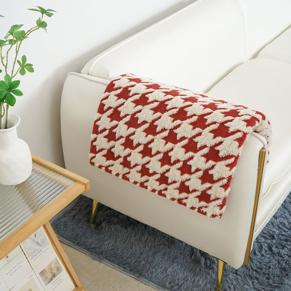 Fleece Throw Blanket Classic Style Houndstooth Pattern Cozy Soft Throw for Sofa Couch Warm Plush Fuzzy Blanket Rose Red