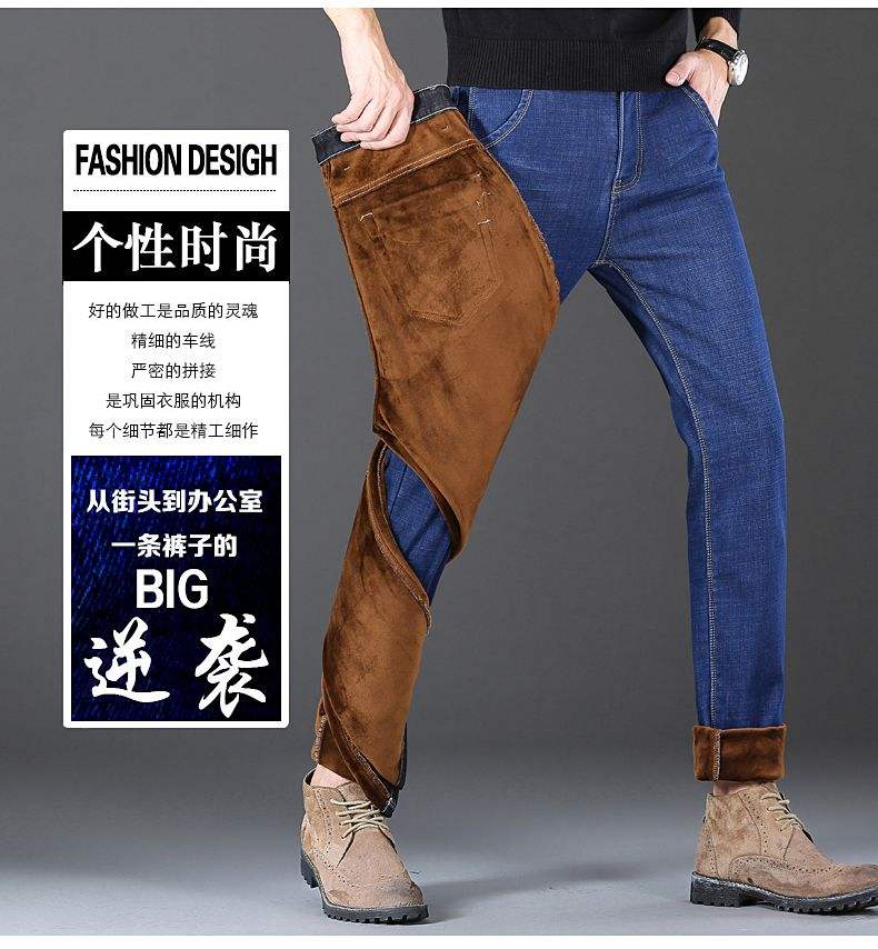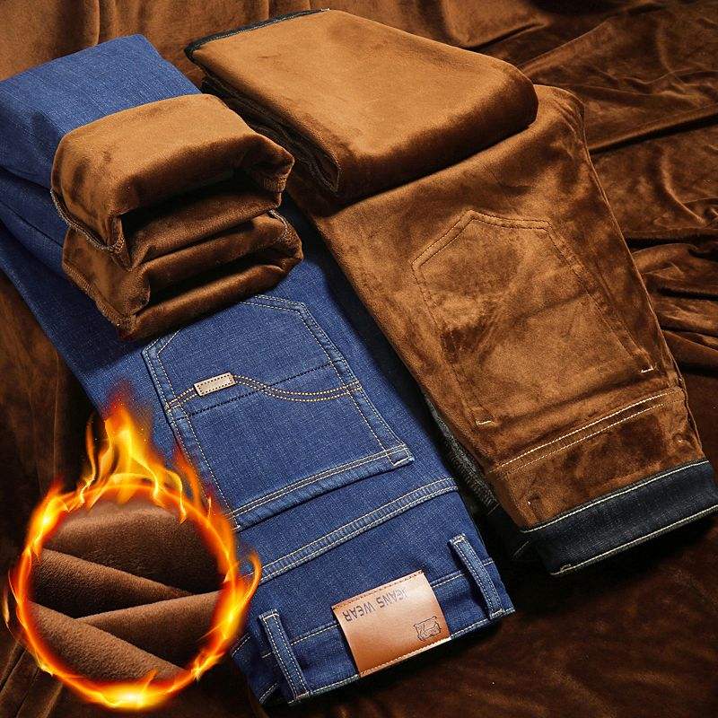 Jeans épais doublés de polaire pour homme, coupe droite ample, taille élastique, grande taille, pantalon décontracté pour homme