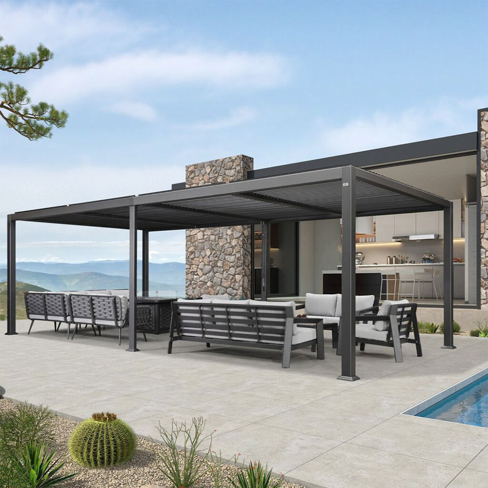 Pergola en aluminium à conception flexible avec lames orientables rétractables pour jardin extérieur, villa, terrasse, cour