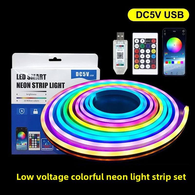 Bande lumineuse LED flexible contrôlée par circuit intégré, synchronisée au son de la musique, lumière néon RGB, application intelligente, lumières colorées pour la maison