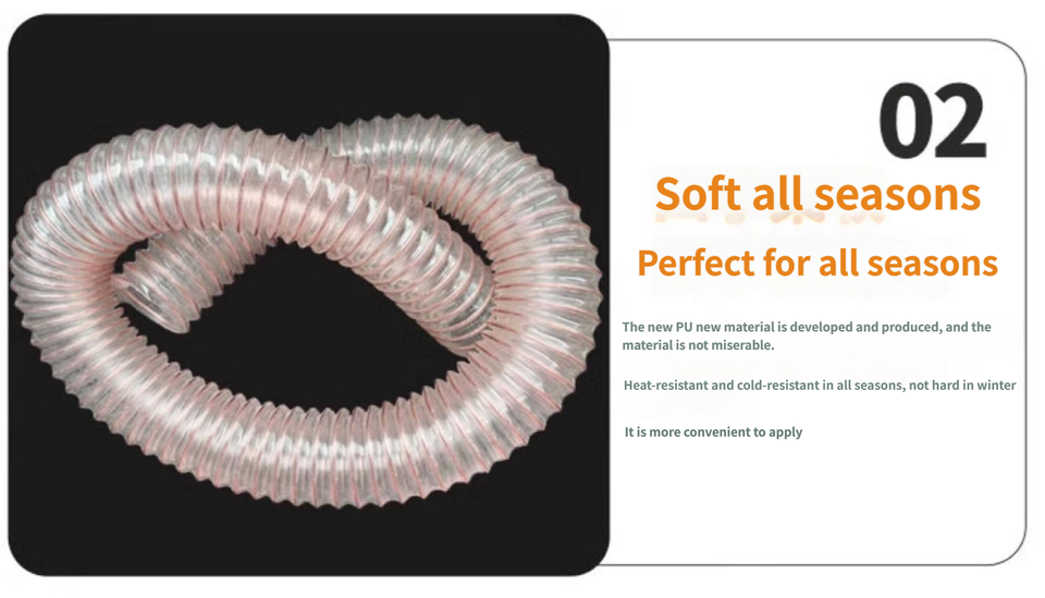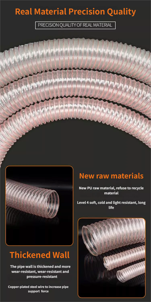 Tuyau flexible en polyuréthane PU avec fil en acier inoxydable, tuyau transparent de 25 à 200 mm pour le transfert d'air